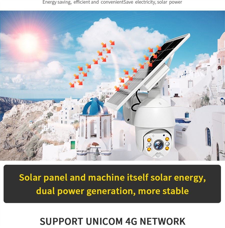 3. 2-Way Audio&pojačalo; Točna PIR detekcija pokreta ---4g vanjska vodootporna solarna kamera ugrađeni zvučnik i mikrofon omogućuju vam daljinski razgovor s ljudima koji su u nadzornom području. 4g vanjska vodootporna solarna kamera usvaja visokoosjetljivi digitalni PIR senzor pokreta i radar detektor, šalje upozorenja na vaš telefon nakon detektiranog kretanja ljudi. s tehnologijom točne analize piksela, u najvećoj mjeri smanjujući lažne alarme uzrokovane kišom i kukcima.