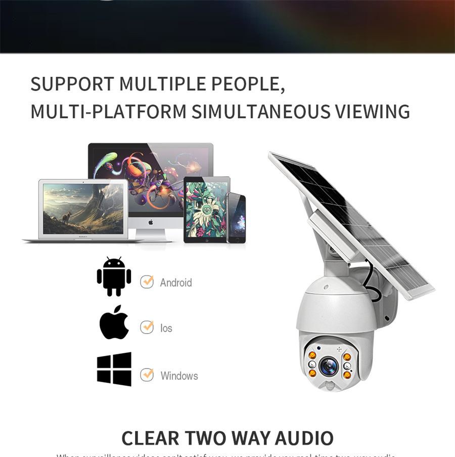 3. 1080P Full HD -- Ova 2MP HD vodootporna PTZ solarna kamera ima 1920 * 1080P (2 Megapixel HD objektiv) Visoke rezolucije, full HD sliku za dan i noć, više detalja na slici. Ugrađen CMOS senzor slike, napredni algoritmi i čipovi poboljšat će vidno polje i pokriva širi raspon. Možete uživati u jasnijoj viziji i videosnimkama od sigurnosne kamere od 720P.
